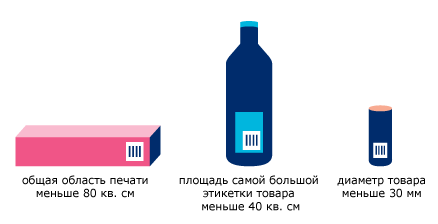- общая область печати на упаковке продукта меньше 80 кв.см