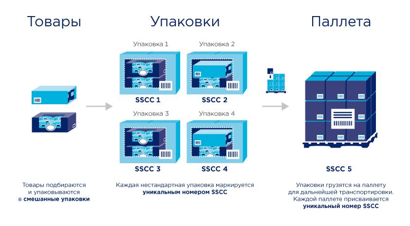 - Номер SSCC является одним из ключевых элементов при построении системы прослеживаемости. Он уникальным образом идентифицирует каждую логистическую единицу и ее содержимое. Номер SSCC всегда покажет вам в каком месте цепи поставок находится ваш товар.